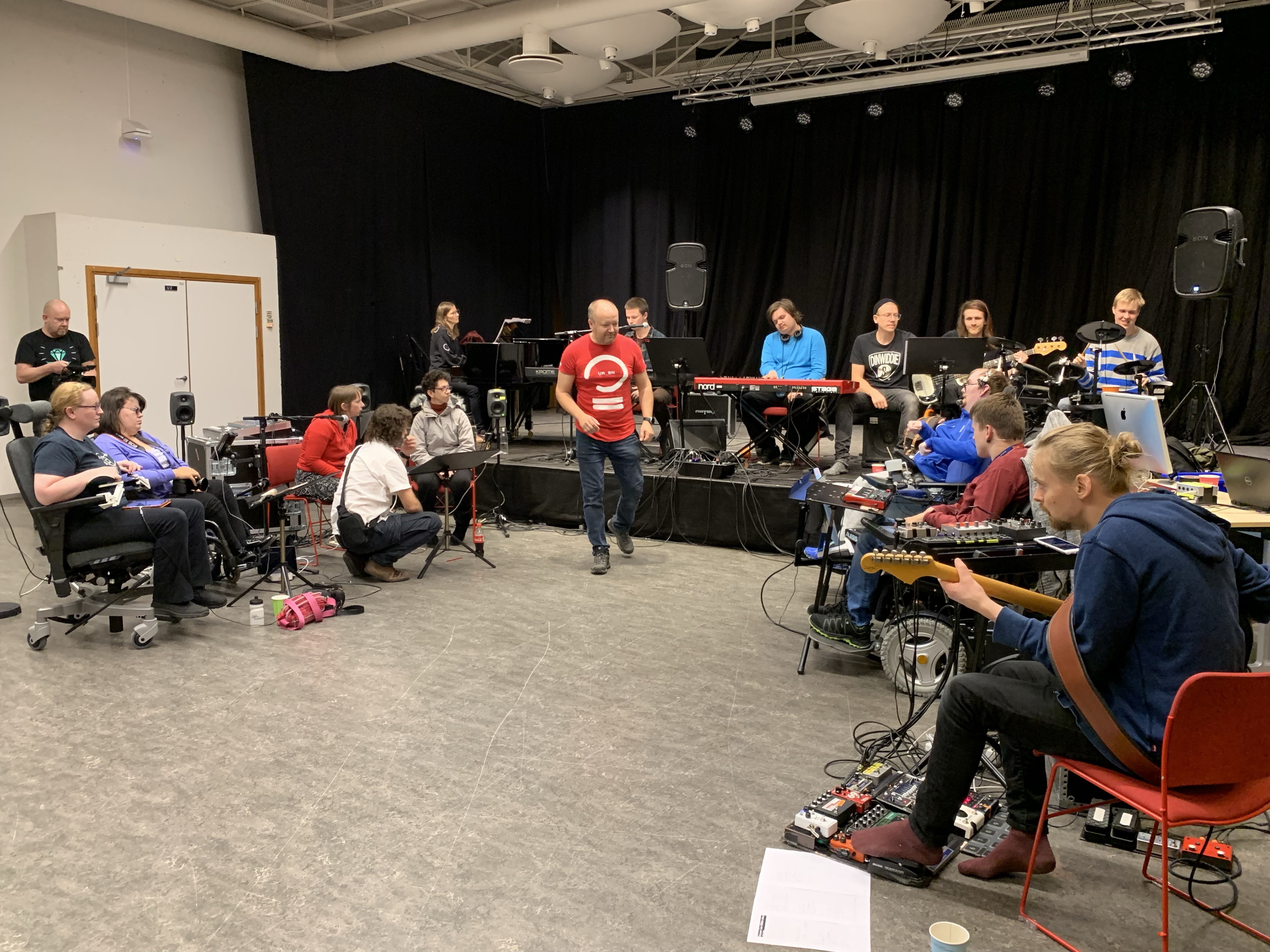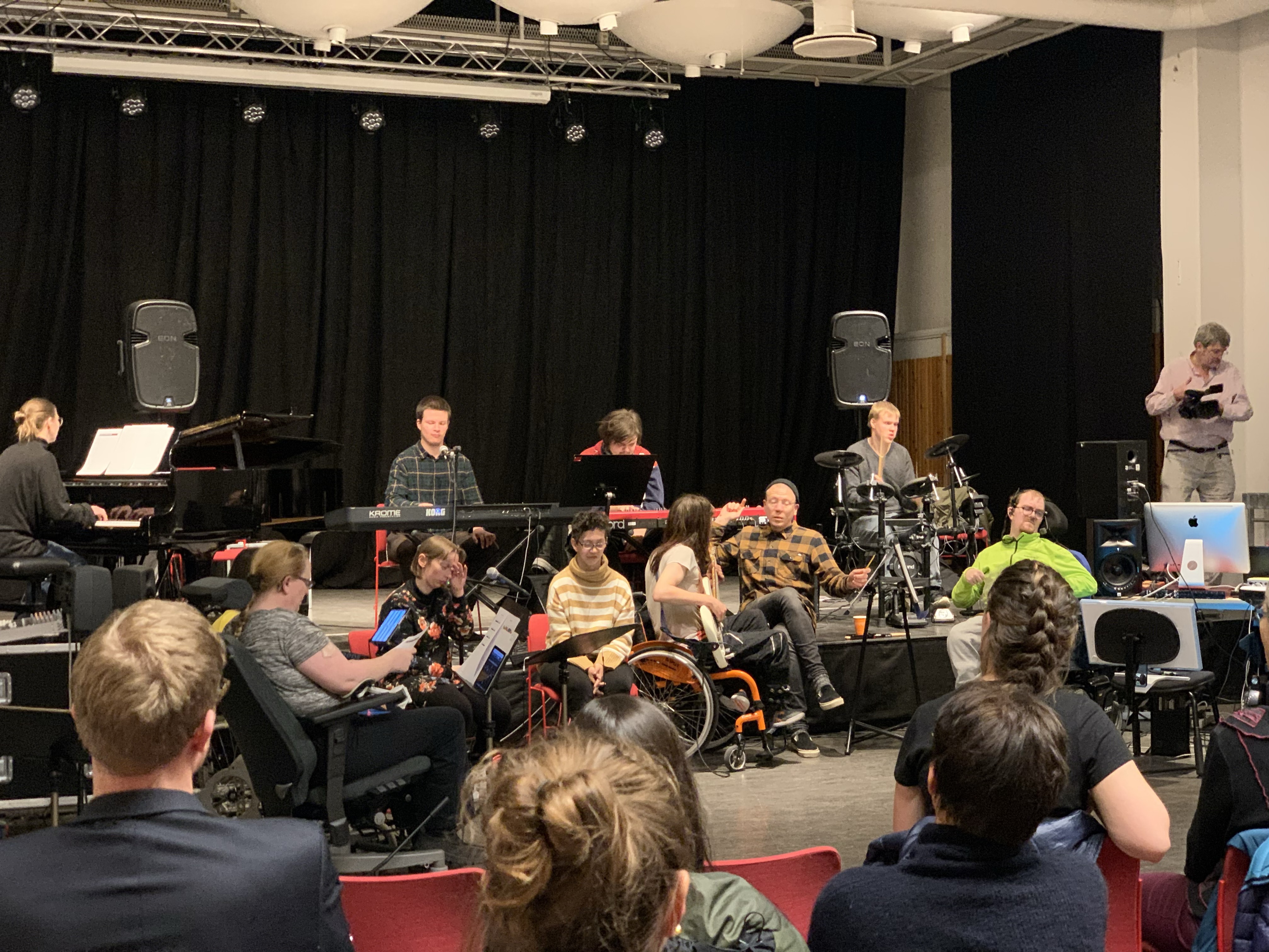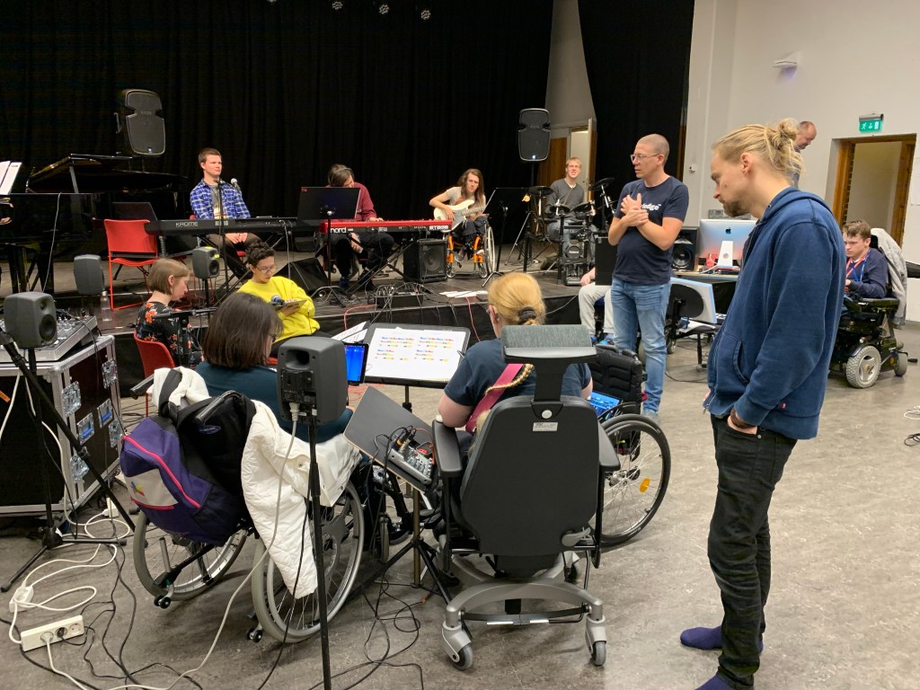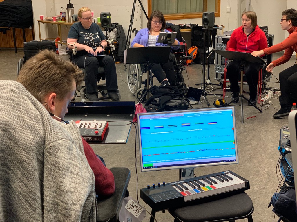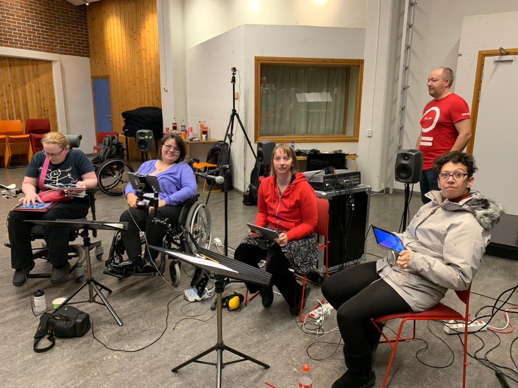 The team meeting in Edinburgh, February 2019Clare showing Tim and Markku EyegazeTim and Markku with ThumbjamiPad Lab rehearsingTim with Touch OSCAfter dinner discussing iPad notationAfter dinner discussing iPad notationClare showing Tim EyegazeBas and Tim with E-Scape on Surface ProAli demonstrating Roli blocks to Tim, Markku and ElinDrake Music Scotland arrive in OsloEveryone together at lastUniversal Orchestra, Resonaari Musicians, Flame Wheels and KristianiPad Quartet and Flame WheelsiPad QuartetFlame WheelsiPad QuartetUniversal OrchestraUniversal OrchestraResonaari Musicians and iPad QuartetAnttoni DancingEmma and Herborg playing pianoKaren and Einar improvisingUniversal Orchestra in TromsøEmma and ElaineVilliErinFrode and TimFrodeEinar and VargPete, Erin and Courtney Anttoni and ElinFrode and TimiPad QuartetUniversal Orchestra’s first performanceNorthern Lights in TromsøNorthern Lights in TromsøNorthern Lights in TromsøHerborg and Resonaari MusiciansFlame Wheels and iPad QuartetUniversl OrchestraAt the top of the mountain in TromsøAt the top of the mountain in TromsøClareFrodeUniversal OrchestraSkype Calling